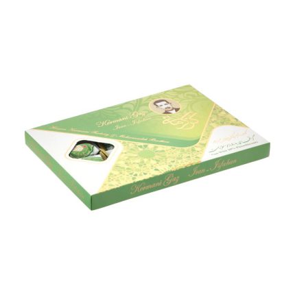 ترکیبات اصلی گز لقمه ای پسته ای 38 درصد جعبه چوبی گز عبارت است از: گلوکز، مغز پسته، شکر، سفیده تخم مرغ